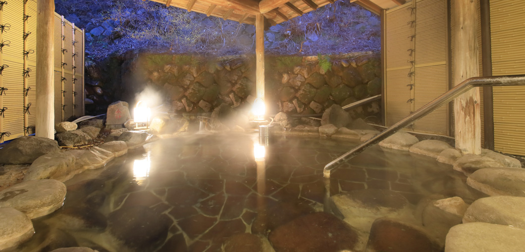 広くてのんびりできる源泉かけ流し露天風呂を大切な方とゆっくりお過ごしいただけるよう、貸切でお愉しみいただけます。